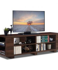 If you need a beautiful and durable TV stand to hold your TV or other things, don’t miss out on this Modern TV Stand in Walnut Wood Finish – Holds up to 60-inch TV. This TV stand is made of MDF veneer, which has a firm structure and strong load-bearing capacity. You can put things like TV, vases and photo frames on it. The most important thing is that it has a large capacity of open storage space. Eight cabinets allow you to put a lot of things, which saves you a lot of space. It has four threading holes on the back that allow wires from TV set-top boxes, dvd players, game consoles and stereos to pass through easily and orderly. And it’s easy to clean and assemble. It will be your best choice, don’t hesitate to buy it!