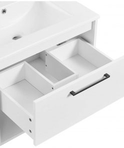- Modern Wall Mounted Bathroom Vanity in White Wood Finish with Ceramic Sink