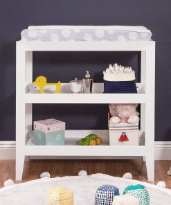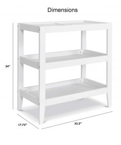 The Modern White Baby Changing Table w/ 1-inch Waterproof Changing Pad features a universal design with clean lines that will suit any style of nursery décor. Crafted from non-toxic materials, its solid construction ensures baby can rest safely and comfortably during changings. The Modern White Baby Changing Table w/ 1-inch Waterproof Changing Pad versatile design includes a built-in tray top to fit a changing pad and two spacious shelves providing storage for all of baby’s necessities. Made of solid sustainable New Zealand pinewood and TSCA compliant engineered wood. 2 spacious shelves that can hold all the diapers, lotions, baskets, and more. We’ve built this changing table with features like stronger shelf bottoms to make it sturdier and long-lasting. Contour Changing Pad NOT included. 1″ Waterproof Pad included and anti-tip kit for added safety.