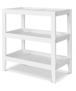 The Modern White Baby Changing Table w/ 1-inch Waterproof Changing Pad features a universal design with clean lines that will suit any style of nursery décor. Crafted from non-toxic materials, its solid construction ensures baby can rest safely and comfortably during changings. The Modern White Baby Changing Table w/ 1-inch Waterproof Changing Pad versatile design includes a built-in tray top to fit a changing pad and two spacious shelves providing storage for all of baby’s necessities. Made of solid sustainable New Zealand pinewood and TSCA compliant engineered wood. 2 spacious shelves that can hold all the diapers, lotions, baskets, and more. We’ve built this changing table with features like stronger shelf bottoms to make it sturdier and long-lasting. Contour Changing Pad NOT included. 1″ Waterproof Pad included and anti-tip kit for added safety.