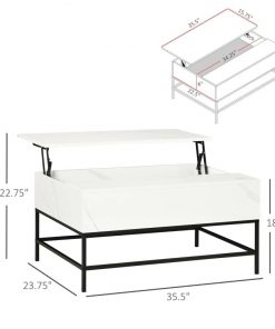 Modern White Lift Top Coffee Table w/ Hidden Storage Black Metal Legs
