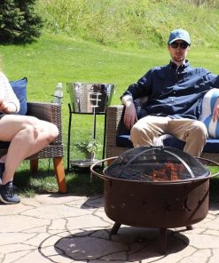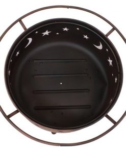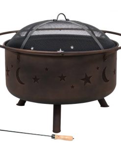 A warming addition to any backyard patio or deck, this Moon Stars Steel Fire Pit Bowl with Screen Cooking Grate and Poker features unique and stylish cutouts that create an incredible fire ambience at night.
