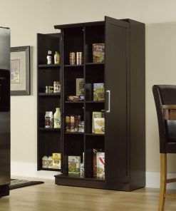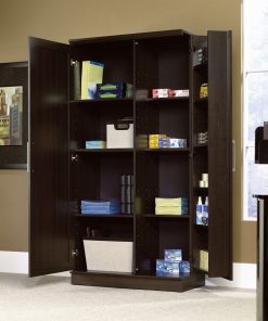 Finding enough storage space in your home doesn’t have to be a problem if you use this Multi-Purpose Living Room Kitchen Cupboard Storage Cabinet Armoire in Mocha Brown Oak Finish. This unique cabinet includes shelving behind each door to increase the storage capacity of the unit. Made of durable engineered wood, the cabinet comes with dark or light wood finishes to complement any room in your home.