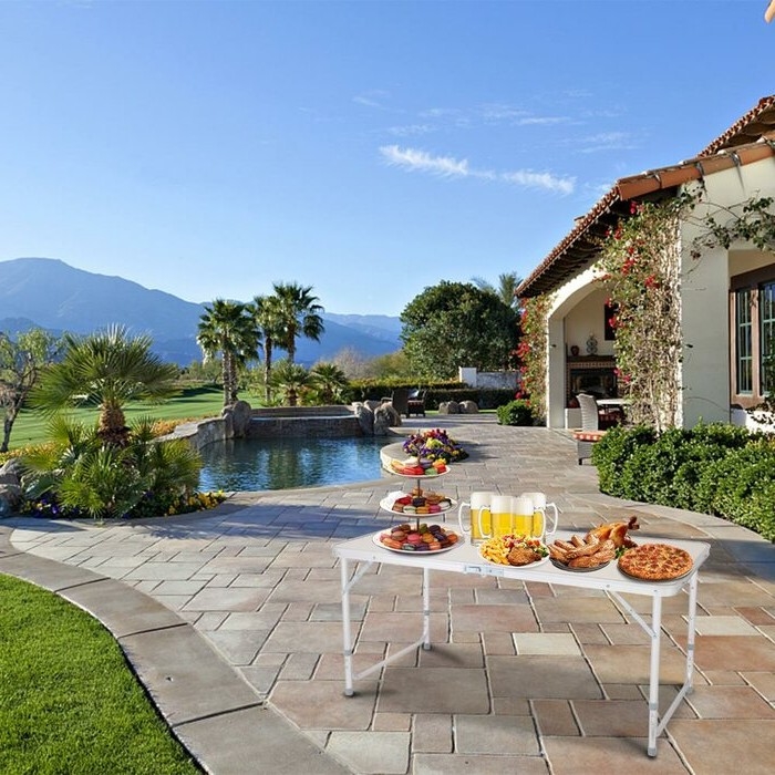 This is our 27.56” H x 47.2” L x 23.6” W Portable Multipurpose Folding Table, which is ideal for family reunions, picnics, camping trips, buffets or barbecues. This table is great for entertaining and can be used as a serving table, game table, or outdoor dining table.