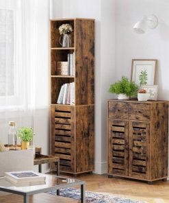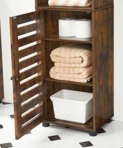 Rustic shelves are elegant stages for displaying your souvenirs in the living room, your mug collection in the kitchen, or your favorite books in the bedroom; this Narrow Brown Wood 3-Shelf Bookcase Bathroom Livingroom Storage Cabinet reflects your faves while satisfying your storage demands. Want to make the most of small corners? This 15.7″L x 11.8″W x 65.7″H tall cabinet comes with 3 open shelves and 2 adjustable shelves behind the door to help you maximize the storage space and organize differently sized items. And yes, you don’t even have to worry about difficult assembly because this storage cabinet comes with clear instructions and numbered parts for zero hassle! Enjoy! Yes, safety is our top priority. Therefore, this bathroom storage cabinet is equipped with an anti-tip kit, which gives it good stability and protects it from tipping over. For safety, be sure to secure the product to the wall with the included anti-tip kit.