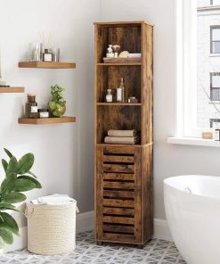 Rustic shelves are elegant stages for displaying your souvenirs in the living room, your mug collection in the kitchen, or your favorite books in the bedroom; this Narrow Brown Wood 3-Shelf Bookcase Bathroom Livingroom Storage Cabinet reflects your faves while satisfying your storage demands. Want to make the most of small corners? This 15.7″L x 11.8″W x 65.7″H tall cabinet comes with 3 open shelves and 2 adjustable shelves behind the door to help you maximize the storage space and organize differently sized items. And yes, you don’t even have to worry about difficult assembly because this storage cabinet comes with clear instructions and numbered parts for zero hassle! Enjoy! Yes, safety is our top priority. Therefore, this bathroom storage cabinet is equipped with an anti-tip kit, which gives it good stability and protects it from tipping over. For safety, be sure to secure the product to the wall with the included anti-tip kit.