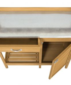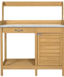 Natural Fir Wood Potting Bench Garden Work Table with Metal Top