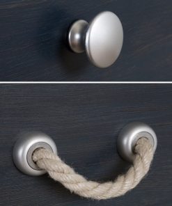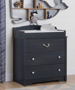 Bring some nautical charm with this stylish changing table turned dresser to add coastal flair to any room. The Nautical Nursery 3 Drawer Rope Handle Baby Changing Table in Dark Blue is sure to be the centerpiece of your nursery, and its handy storage spaces make it really useful. The top drawer features an easy to pull rope-like handle and the bottom two drawers with cute knobs. Versatile Storage This changing table features 3 large drawers with smooth metal slides for quiet and easy access.