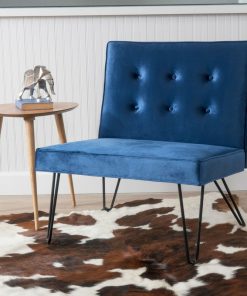 This luxurious yet simple Modern Navy Blue Velvety Soft Upholstered Polyester Accent Chair Black Metal Legs balances comfort and practicality to accommodate all the sides of your life. Combining a soft velvety surface with minimal iron legs, it will be at home in any room.
