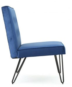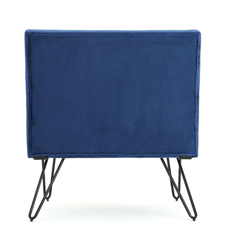 Navy Velvety Soft Upholstered Polyester Accent Chair Black Metal Legs