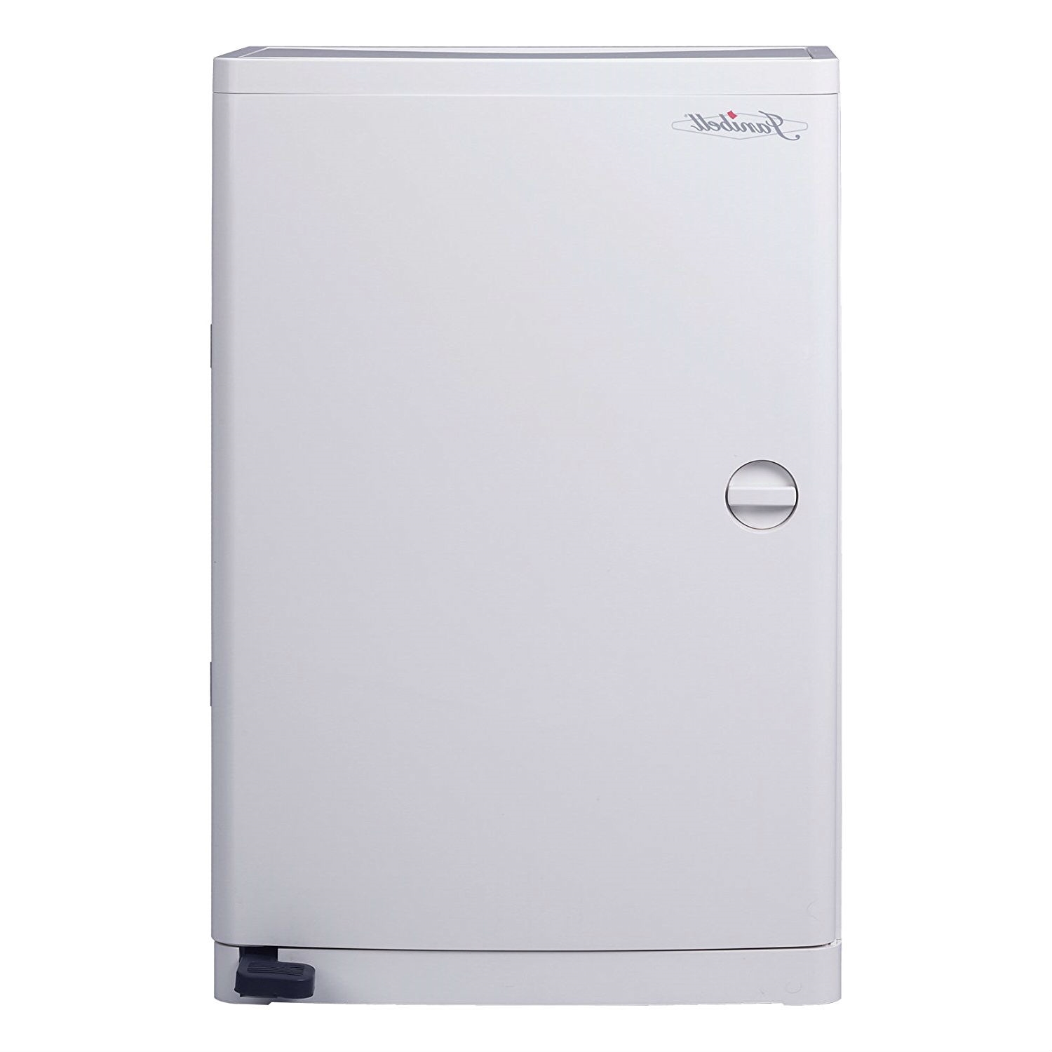 This No Hands 18-Gallon Kitchen Trash Can in White with Food Pedal Lid is a sturdy, extra large 18 gallon capacity unit with a clean profile, works well in busy area where there is heavy volume. Daily trash removal is quick, easy and never wastes liner material. Ideal use for commercial offices, hospitals, labs, dentist’s office, hamper in locker room.