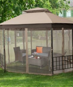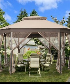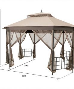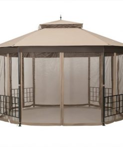 - Outdoor 10 x 12 Ft Octagon Gazebo with Mosquito Net Sidewalls and Brown Canopy