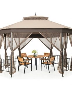 - Outdoor 10 x 12 Ft Octagon Gazebo with Mosquito Net Sidewalls and Brown Canopy