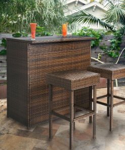 Weather-resistant wicker material construction makes this bar set great for outdoor use