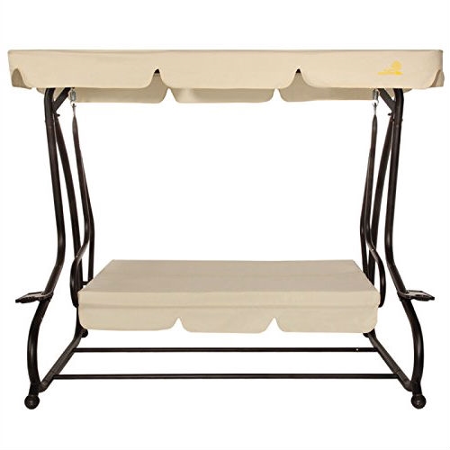 • Outdoor 3-Seat Canopy Swing with Beige Cushions for Patio Deck or Porch