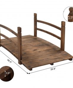 This Outdoor 4-ft Wooden Garden Bridge in Rustic Brown Wood Finish has a carbonized finished fir wood makes it a beautiful and rustic additional walkway to your garden, yard, creek or farm. Solid arch frame with 3 support poles underneath, 0.6″ thickness allows max weight capacity up to 450 lbs. Weather-resistant durable fir wood construction prevents rot, cracking, and splitting. The package included the instruction and hardware. Please patiently invite your friends or families to join this activity. Electric Drill is highly recommended!