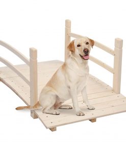 Outdoor 4-ft Wooden Garden Bridge with Rails in Natural Wood Finish