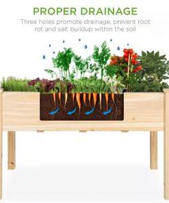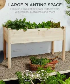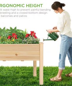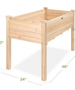 This Outdoor 4-ft x 2-ft Fir Wood Raised Garden Bed Planter Box is designed with a long bed space (5CuFt) deep enough to provide your plants and vegetables with ample room to breathe and grow healthy. Allows excess water to drain out, keeping soil fresh and protecting plants from waterlogging or mineral buildup. Naturally durable Chinese fir wood provides a water- and weather-resistant structure while optional foot caps discourage absorption and breakdown. A 30-inch tall design reduces excessive bending and kneeling to help preserve your back and knees as you tend to your balcony, deck, or patio garden. Separates wood from the soil, keeping the wooden garden planter in excellent condition and discouraging weeds and animals from interfering with plant growth.