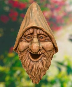 This Outdoor Cast Resin Tree Face Birdhouse in Wood Finish has a distinctive and unique way to add your individual personality to your front or back yard. Birdie in the Woods intricately sculpted old man and elf face-style bird houses resemble an authentically carved wood piece, but are crafted from resin for long lasting beauty and durability outdoors. Can be easily hung on wall or fastened to tree by single nail. Cleanout holes in back of sculpture. Measures 7. 5-inch wide x 13. 5-inch tall x 5-inch deep.