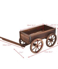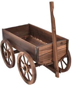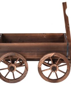 This Outdoor Garden Fir Wood Barrel Planter Wagon on Wooden Wheels has a large and deep barrel planter for planting flowers or other plants. Characterized by rustic design and antique look, this flower planter is also a perfect outdoor décor in your patio, garden, or backyard. Constructed of solid fir wood and handled with a burnt finish, the wagon cart planter is weather-resistant and serves a long time. Natural and sustainable material perfectly matches your garden or patio style. With four wheels and one long wood handle, it is convenient for you to move this cart planter in your backyard or patio. Complete hardware and assembly manual are included. Detailed installation steps are shown in picture and text form for your reference. If you have any problems assembling the planter, you can also feel free to contact customer service. The width and length of the barrel planter will securely hold your plants in place. It provides a spacious room for you to plant different flowers or plants. Perfect depth kindly protects flowers’ roots and enables them to healthily grow.