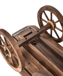 • Outdoor Garden Fir Wood Barrel Planter Wagon on Wooden Wheels