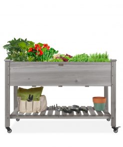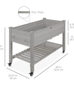 All of your garden needs in one place! This Grey Locking Wheels Raised Mobile Garden Elevated Wood Planter is Built with a set of locking wheels to move the planter from place to place and capture the right amounts of sun and shade. It’s ergonomic structure stands 30 inches tall, making it perfect for those who struggle to bend down or lean over while gardening. Also, comes with a garden bed liner that separates wood from the soil, keeping planter in excellent condition and preventing weeds and pests from interfering with plant growth. Great for maximizing space and has 4 drainage holes to allow wood from the soil, keeping planter in excellent condition and preventing weeds and pests from interfering with plant growth. Assembly is easy and takes less than 30 minutes.