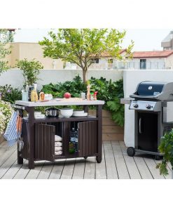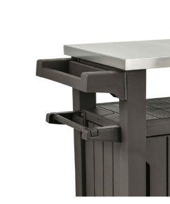 What’s a pool party grill off without a batch of your famous mixed drinks? Bring the sweet concoctions all together and serve them up right on the patio with this classic Outdoor Grill Party Caster Bar Serving Cart with Storage Dark Brown, a beautiful base for any home bar or backyard BBQ buffet. Its slatted bottom is perfect paired with the stainless steel top for a contemporary look that blends right into any ensemble.