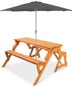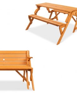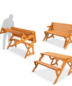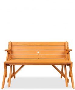 Get the best of both worlds with the Outdoor Interchangeable 2 in 1 Multi-Use Wooden Picnic Table Garden Bench Umbrella Hole. This unique furniture set up starts as a picnic table and transforms to a garden bench in seconds, allowing you and guests to enjoy lunch or simply lounge outside. Made from sturdy natural wood holds up to 4 people when used as a picnic table and 2 people when used as a bench; made lightweight to allow for easy mobility. Also includes 1.5-diameter hole in the table top/backrest will fit most standard umbrellas, so you can provide a shady atmosphere anytime of day.