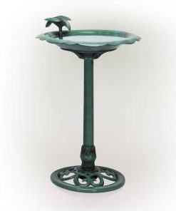 This Outdoor Polypropylene Weather Resistant Bird Bath in Dark Green Finish is sure to attract feathered friends and create a charismatic ambiance for your garden, patio, deck, yard, or other outdoor space. A shallow and wide bowl assures that multiple small birds can drink and bathe safely at the same time. A natural green finish blends into nature while the base has room to plant flowers. Polypropylene material resists rust and damage from the elements while the sturdy base prevents the birdbath from tipping over. Birdbath measures 20″L x 20″W x 31″H, the perfect size for your yard. Shallow basin allows easy access for all bird types. Fill a bath with fresh, shallow water and enjoy watching all the birds congregate from the comfort of your couch or while at the table having dinner with your family or working on art projects with the kids. This elegant birdbath is perfect for pairing with a bird feeder to coax a variety of birds outside your window during any season. With this birdbath, your yard will be the delight of humans and winged creatures alike!