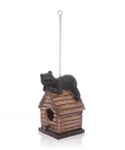 Lure all types of birds to your backyard with this Outdoor Polyresin A-Frame Birdhouse in Brown Wood Finish Bear Figurine . Enjoy watching all the birds congregate from the comfort of your couch or while at the table having dinner with your family or working on art projects with the kids. These durable birdhouses will be appreciated as a reliable place to stay for the little birds, while you get to enjoy all that enticing cuteness-buzzing wings, iridescent color, & tiny features-up close.