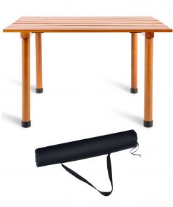 - This portable roll up camping picnic table is ideal for family reunions, picnics, camping trips, buffets or barbecues. The table comes with wood table top and wood legs, as well as carry bag.