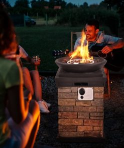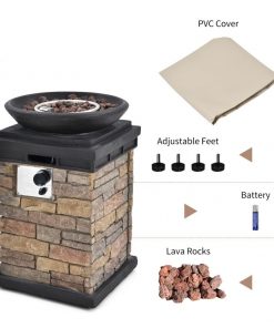 This durable 40,000 BTU Outdoor Propane Burning Fire Bowl Firepit Heater is made of magnesium oxide and stainless steel. Comes with electronic lighting and adjustable knob for convenient lighting and adjustments. Up to 40,000 BTU of heat output, the fire pit table will provide warmth and lighting for you without smoke and dust. Also comes with a cover to protect the fire pit table from rain or sun. Stacked stone simulated brick construction look suitable for all yards.