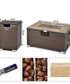 Make your backyard a heated getaway with this Brown Propane Gas Rattan Fire Pit Table Set with Side Table Tank Holder and Cover. Severs as a dining table without heat providing a place for gathering time. The tank holder side table is also versatile. Both the fire pit table and propane tank holder are made of all-weather PE rattan. Along with the waterproof cover, it is suitable for outdoor use, creating a happy time for you and your family or friends. When you need to move it to another place, the handles on both sides will help a lot. And the adjustable feet bring extra stability. Keep rocks dry to avoid bursting.