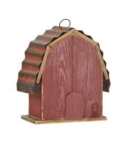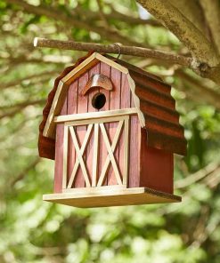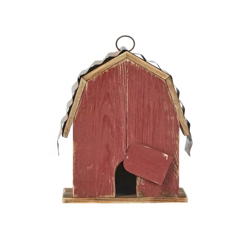 - Outdoor Red Wood and Metal Barn Style Hanging Bird House