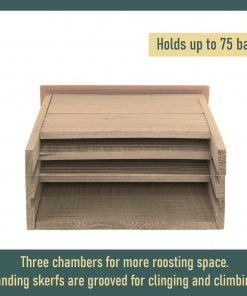 - INCREASED CAPACITY: The inside chambers have grooved interior walls which provide a safe place for bats to climb and roost. Features three cozy roosting chambers and landing skerfs at the base for bats to grip when landing. Holds up to 75 brown bats.