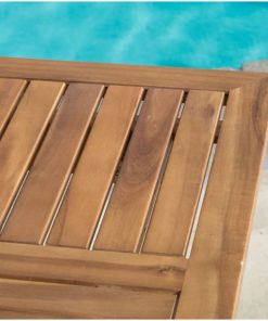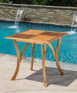 Wish you could take a trip to distant shores every weekend? Bring airy appeal into your abode with this Outdoor Solid Wood 31.5 inch Square Patio Dining Table, the perfect piece to anchor a bright sunroom or join an outdoor ensemble. Crafted of solid acacia, this teak-finished design blends seamlessly into any existing layout while adding a splash of coastal flair. Its top showcases four sections with perpendicular wooden slats that give it subtle eye-catching appeal. Place it on your patio along with a set of rattan stools for a breezy backyard entertaining space, then grab a book and some sunscreen to relax in your charmed arrangement.
