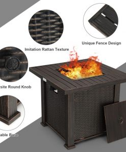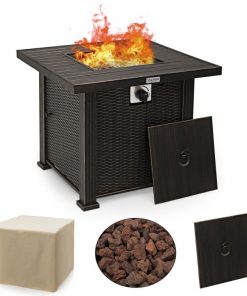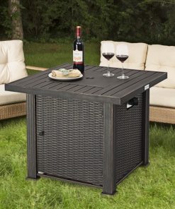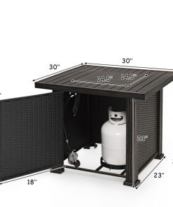 This durable 50,000 BTU Square Propane Gas Fire Pit Table with Table Cover is a versatile piece of patio furniture that you’ll find yourself using all year round. Sturdy and stable steel material provides strong durability. Equipped with electronic ignition and in-built control panel. Table cover with pull-tab for convenience. Lava rocks included to beautifully accent the flames. Door with handle for hidden the inner space. Suitable for 20 lbs. propane stove. Assembly Required. Propane tank NOT included.