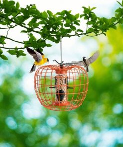 - Outdoor Squirrel Resistant Orange Metal Mesh Small Bird Feeder