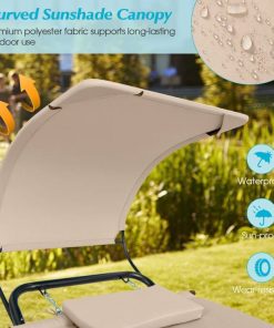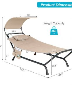 Outdoor Tan Hammock Style Chaise Lounge Chair Cot with Canopy and Storage Bag
