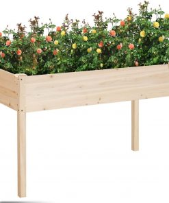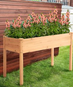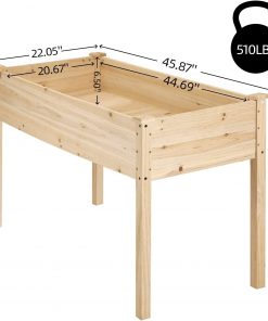 This Outdoor Wood Raised Garden Bed Planter Box 46 x 22 x 30-inch High is designed with long bed space (44.7″*20.7*6.5″ internal size), the large capacity and depth are enough to allow your plant roots to penetrate deep into the soil to absorb nutrients. Natural and durable fir for the main body, with harder pine for the legs, with a clear texture and load-bearing, preventing deformation and bending over time. The connection method between the boards adopts the tenon joint structure to ensure the maximum strength and minimize the gap. The 30-inch high design reduces the wear and tear of customers bending the waist during use, and the plant can be watered without the need to lower the head. The design away from the ground can keep the plants away from weeds and rodents, which can avoid nutrients being taken, and your plants being eaten by critters.