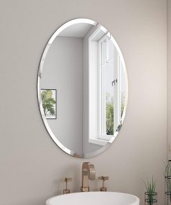 The Classic Oval 35-inch Frameless Beveled Bathroom Bedroom Living Room Vanity Wall Mirror will make a great addition to any room in your home. Since there is no frame, this oval mirror makes it easy to match colors in your bathroom, bedroom, living room, or anywhere in between. Finely crafted 1-inch bevel offers showroom quality, while the polished edges ensure safe handling and a finished appearance.