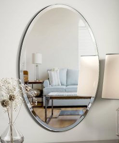 The Classic Oval 35-inch Frameless Beveled Bathroom Bedroom Living Room Vanity Wall Mirror will make a great addition to any room in your home. Since there is no frame, this oval mirror makes it easy to match colors in your bathroom, bedroom, living room, or anywhere in between. Finely crafted 1-inch bevel offers showroom quality, while the polished edges ensure safe handling and a finished appearance.