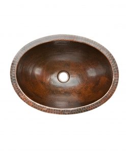Oval Hammered Copper Bathroom Vessel Sink 17 x 12 inch