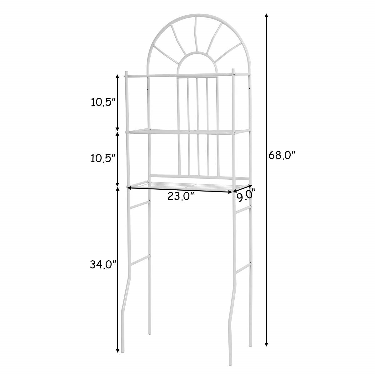 With this Over Toilet Bathroom Space Saving Storage Shelving Unit in White Metal Finish, an organized and neat bathroom can be easily cometrue, which is a perfect furniture to decor your bathroom without sacrificing valuable floor space. Our brand new product Toilet Shelf, universally acknowledged as an excellent helper in storage, maximizes the space efficiency in your bathroom. Attractive and functional, our Space Saver features metal tubing that is designed in a shape that is made to fit over your toilet. You can add instant storage space in your bathroom and make your towels and other bathroom essentials more accessible. Constituting high-quality powder-coated iron pipe, this storage shelf is sturdy and anti-corrosion and promises you years of sturdy and reliable use. It is perfect for reducing clutter in the your bathroom, creating extra storage space and keeping your space well-organized. High performance and attractive advantages guarantee you a good buy. Do not hesitate to buy it!