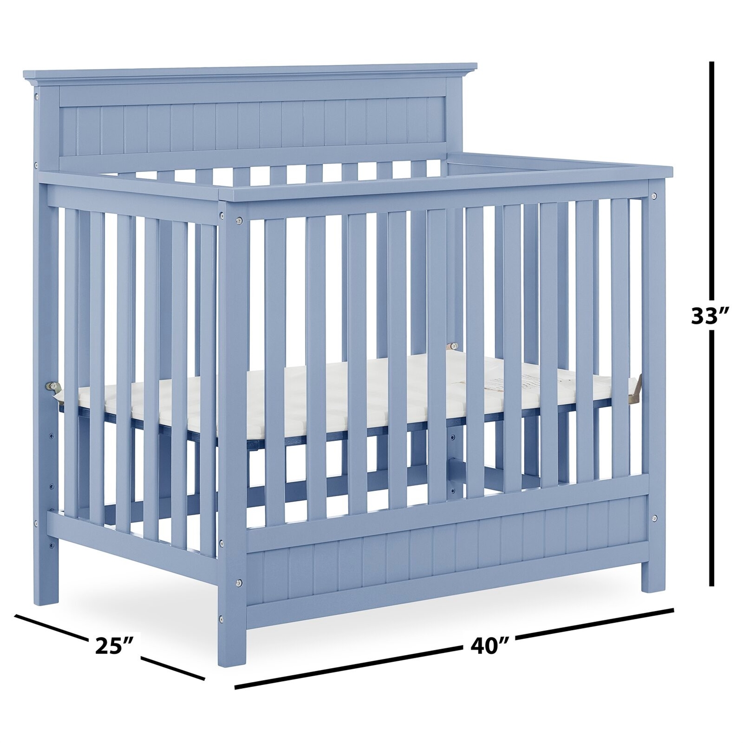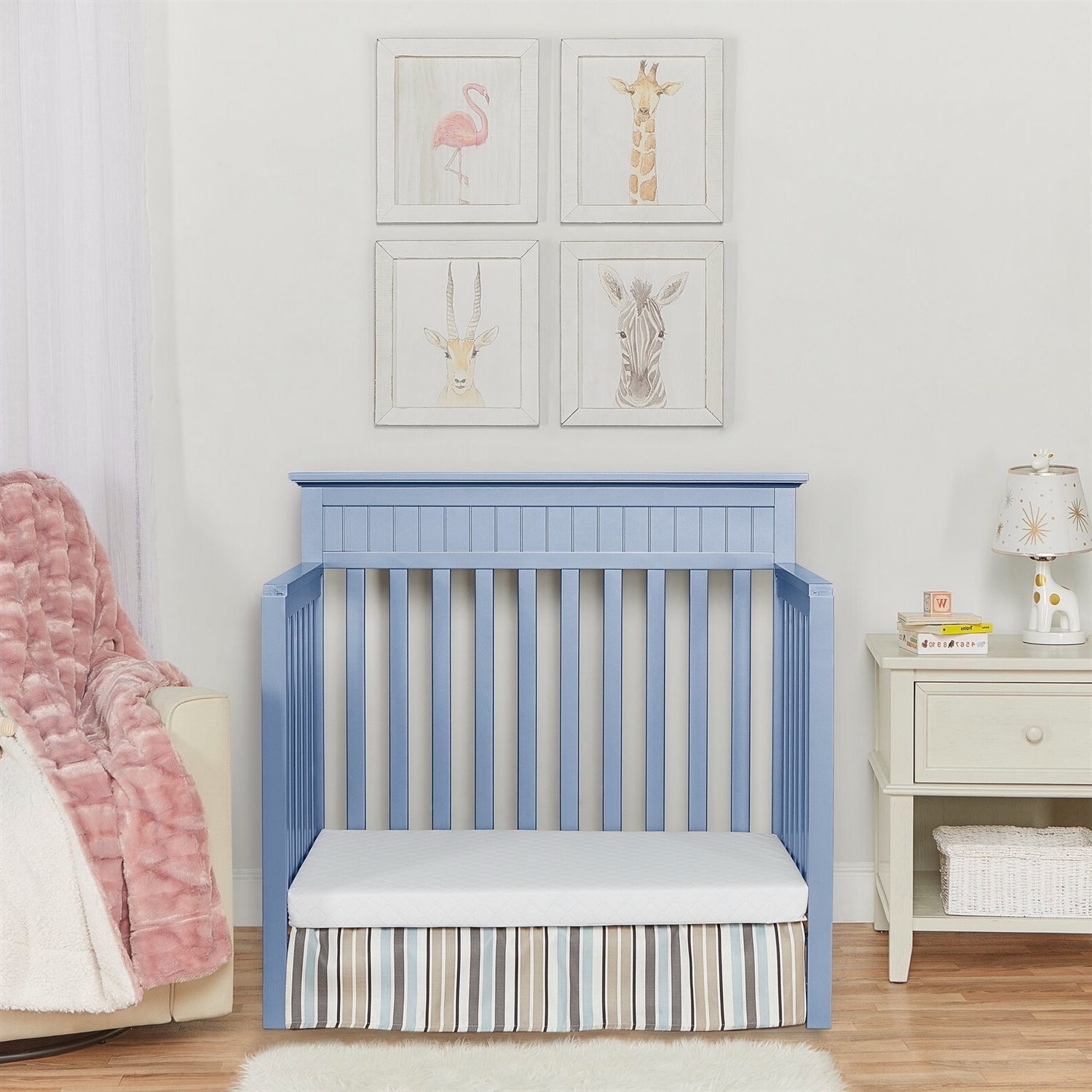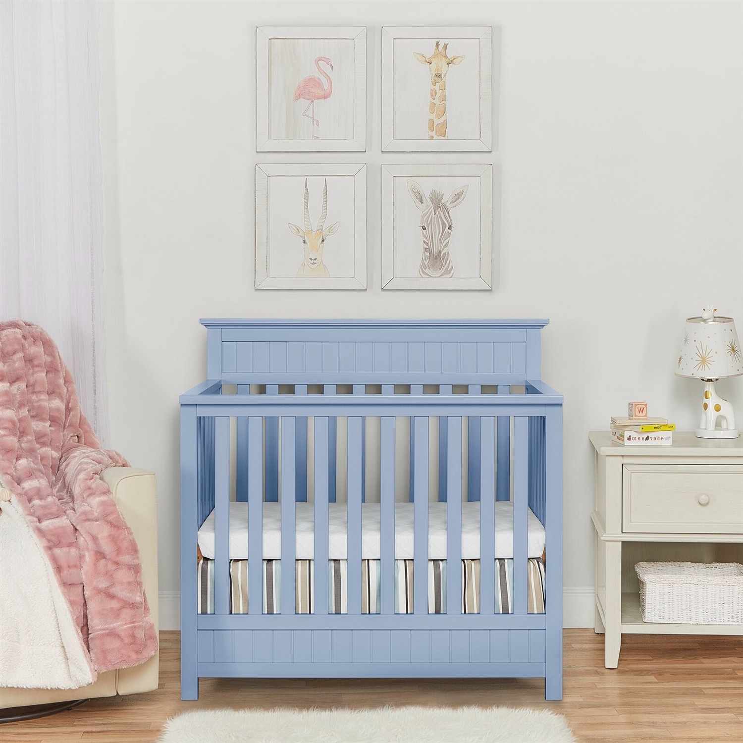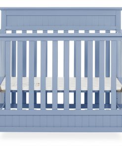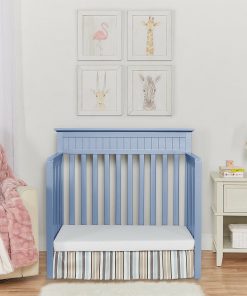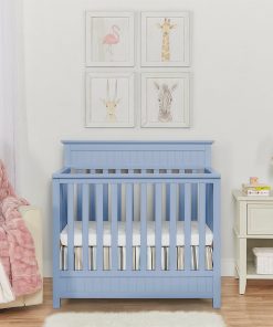 The 4-in-1 Wooden Baby Blue Convertible Crib is a modern classic style with subtle molding details on the headboard and footboard. This crib offers a long-term value converting into a charming day bed and twin-size bed (twin size bed frame and twin mattress not included). The Convertible Crib mattress platform adjusts to 3 different heights depending on the age of your baby. Crib converts into a daybed and twin-size bed. Twin Size Rail sold separately. Bed frame, Bedding and Mattress not included. Create a breezy nursery with palettes of coastal blues, textured wood finishes and accessories that reflects a summer day at sea. All our cribs are JPMA certified to meet/exceed CPSC/ASTM safety standards. Our products are tested by 3rd party labs for lead/other toxic elements to meet/exceed CPSC/ASTM safety standards.