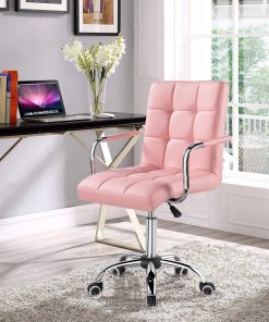 - Pink Modern Faux Leather Mid-Back Swivel Office Chair with Armrests and Wheels