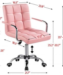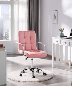 Looking for a good-looking office chair? Make your sitting comfortable with this Pink Modern Faux Leather Mid-Back Swivel Office Chair with Armrests and Wheels! It provides you with the best budget-friendly seating solution. An ideal home/office work chair, it boasts safe height adjustments, 360° swivel seat/wheels, a heavy-duty base, solid yet healthy padding, stylish PU texture and more. You can also turn it into a bar stool by taking off the armrests. Pretty magic, isn’t it? We are dedicated to what makes both your life and budget happy. Rest assured that all our items are subject to rigorous tests before shipment. This heavy-duty office chair applies an industrial-strength base mainly consisting of 5 conjoined steel bars. Each bar runs in a curved line to cushion the seating force to protect your floor from abrupt damage and meanwhile to extend the life span of the chair. You can turn this multipurpose office chair into a bar stool style office chair. The armrest is movable, just leave the armrests when you assemble the whole piece. This office chair appears in classic colors. The PU texture increases much attractiveness, and the electroplated metal frame adds to more elegance. This computer chair comes with simple yet clear step-by-step instructions. The detailed instructions will guide you through the assembly. Feel free to contact our customer service if necessary! Technical grade wheels are selected, smooth, solid, wear-resistant, and noise-free, ensuring your excellent using experience.
