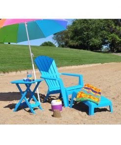 This Pool Blue Folding Side Table in Durable Patio Furniture Plastic Resin is excellent for serving drinks and snacks. Table easily opens and closes for carrying and storage. Tabletop is 17-1/2″ x 15″ and 20-Inch tall.