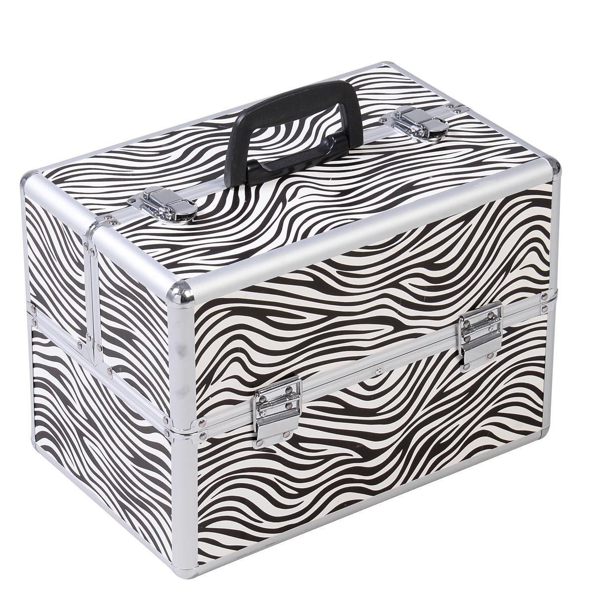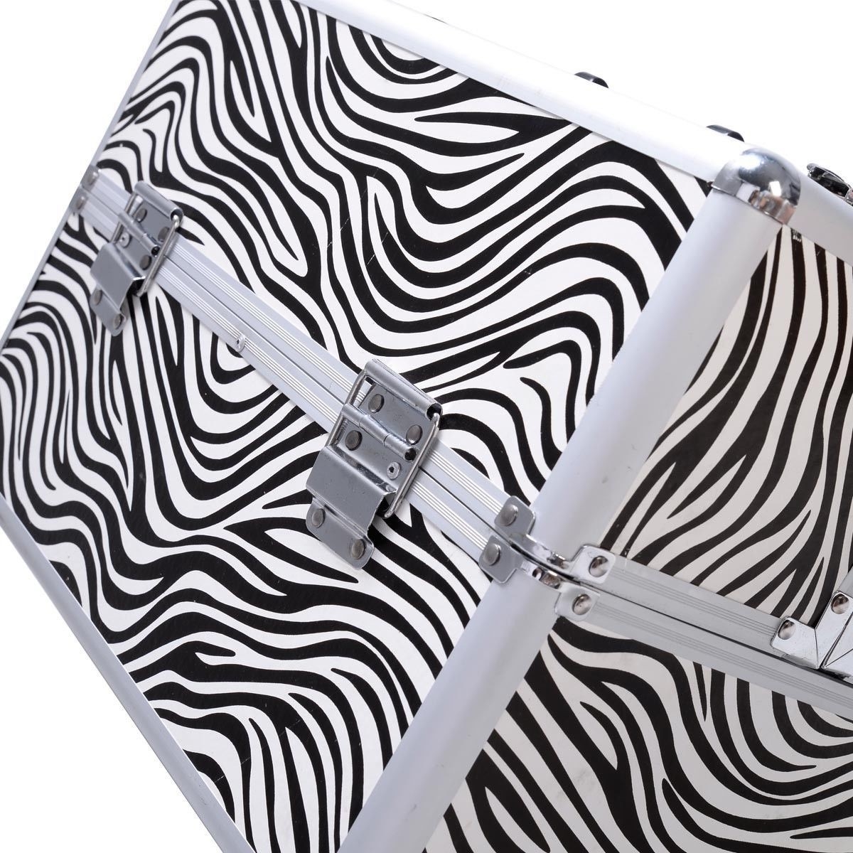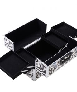 This Portable Jewelry Box Makeup Storage Case Organizer in Zebra is designed with a durable aluminum frame, the makeup organizer with ample storage is perfectly fitted for stylists on the go. Built with 2 extendable tiers divided into 4 small trays into both sides, the makeup box is great for neat organization of all your tools and products as well as quick access to all these items. The case could be wide opened, which makes it an easy way for you to choose what you need at first sight. Besides, there are four rubber feet on the bottom to prevent the surface from being scratched when placing it. There are 4 extendable trays available to make sure all your cosmetics organized separately and won’t be mixed together.
