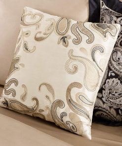 Give your mattress a magnificent makeover with this Queen 12 Piece Cotton Polyester Comforter Set Black Gold Paisley! Set includes 1 Comforter, 2 Decorative Pillows, 2 Euro Shams, 2 Standard Shams, 1 Bed skirt, 1 Flat Sheet, 1 Fitted Sheet, and 2 Pillowcases. Has a silky feel and is made from Polyester & Cotton. Set is in Queen size and ships via FedEx Ground.